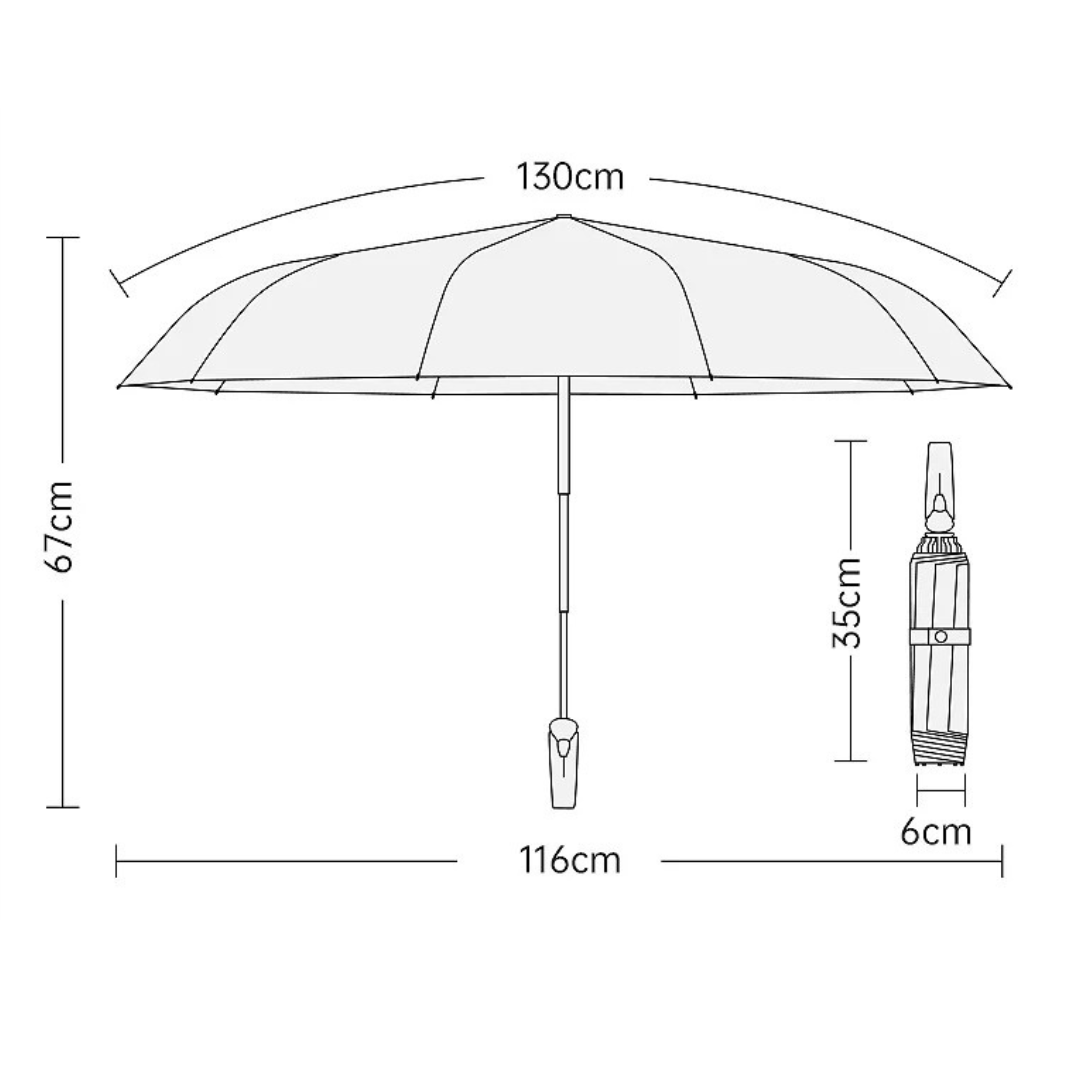 Prime’s reverse-fold canopy closes upward, trapping water inside instead of dripping everywhere. It keeps your floors, bags, and car seats dry — and makes it easier to open and close the umbrella in tight spaces.
